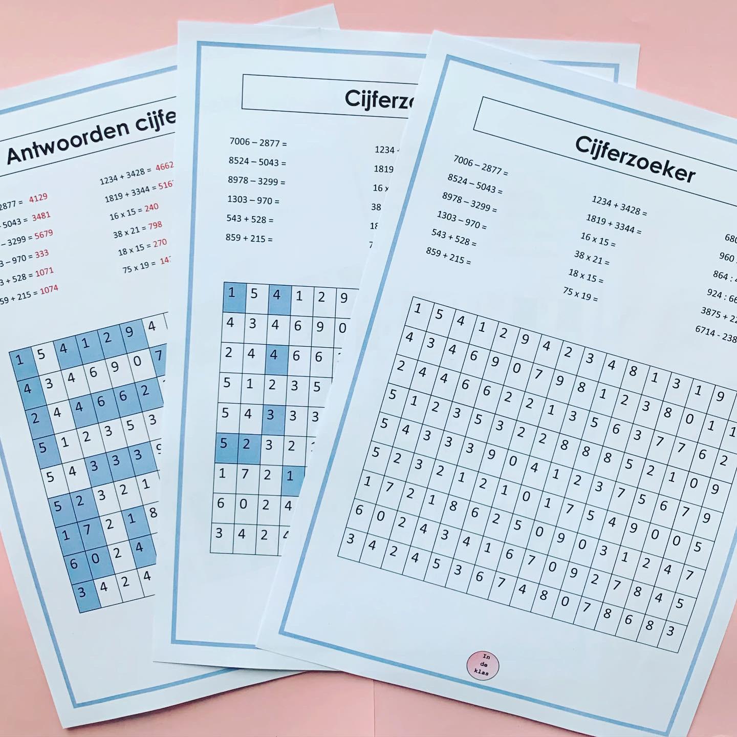 Een keer geen woordzoeker, maar een cijferzoeker. Oefenen met de onderdelen delen, vermenigvuldigen, optellen en aftrekken. Te downloaden bij bestanden!